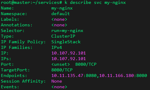 service 정보를 확인할 때 endpoint가 정상적으로 3개가 모두 올라왔는지 확인한다.