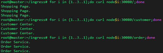 image: nginx:latest Service port: 80 / 으로 접속 시 Welcome to Main Page 표시 /shopping 으로 접속 시 Welcome to Shopping Center /order 로 접속 시 Welcome to order page /customer 로 접속 시 Welcome to customer page
