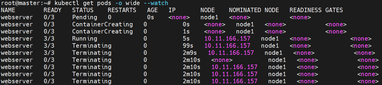 - kubectl get pods -o wide --watch : 파드의 동작이 변경될 때마다 라인을 누적하여 표시