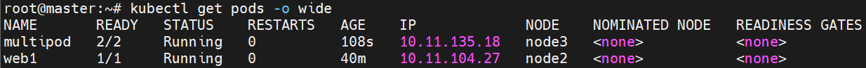 그리고 멀티 컨테이너 파드는 IP를 보면 1개만 표시가 된다.