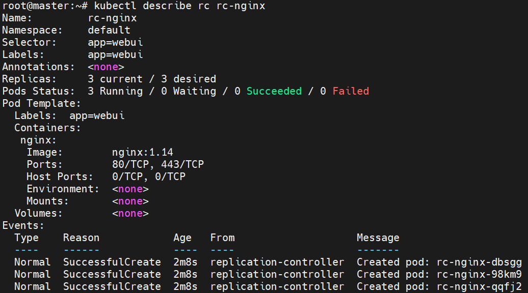 kubectl create rc-exam --image=nginx --replicas=3 --selector=app=webui