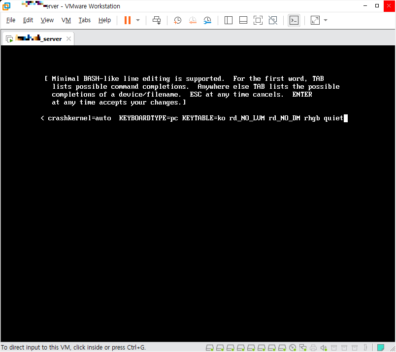 우리는 방향키로 저 세가지 중에 kernel /vmlinuz 뭐시기 적혀 있는 곳으로 포커스를 옮기고 한번더 e를 눌러준다.