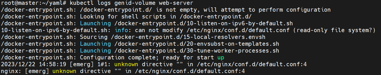 해당 디렉토리는 읽기 전용이며 디렉토리 내부에 컨피그맵의 nginx-config.conf 키의 값을 default.conf라는 이름의 파일의 내용으로 저장한다.