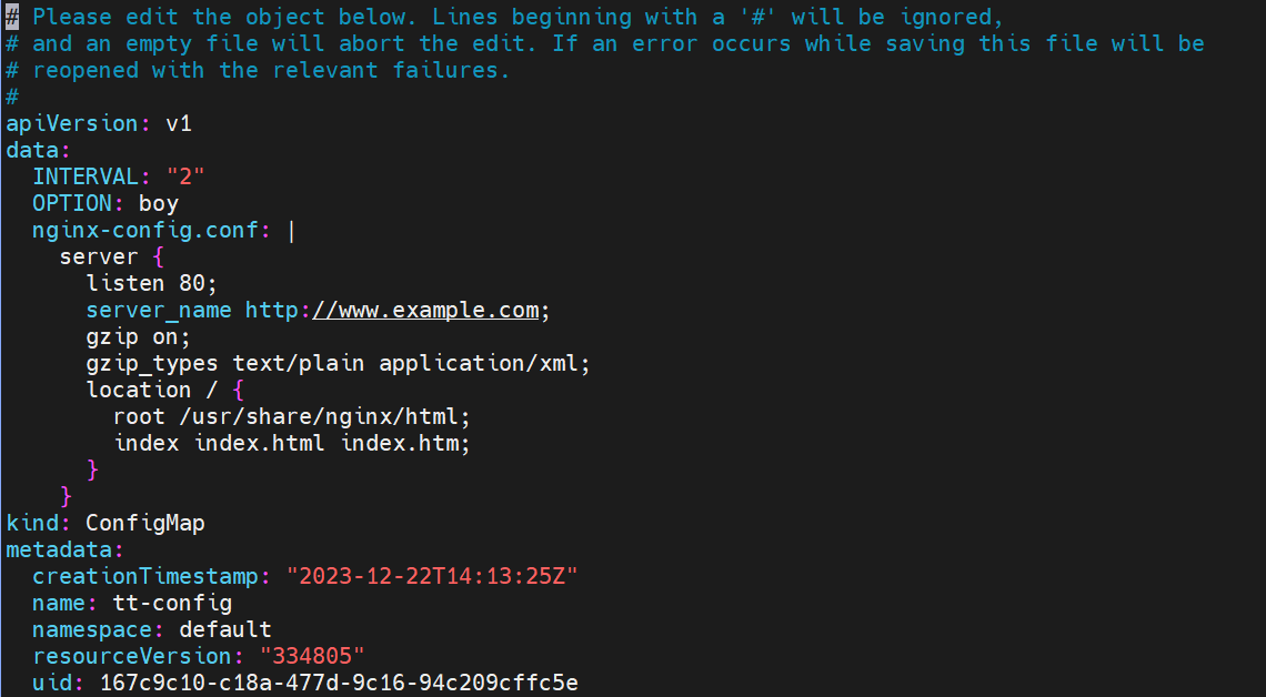 컨피그맵 yaml파일도 kubectl apply -f 로 생성이 가능하며 yaml파일을 수정하면 동적으로 값이 변경되어 적용된다.