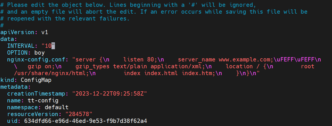 줄바꿈이나 탭 같은 입력은 이스케이프 문자를 사용해서 컨피그맵의 값을 저장하니 주의하자.