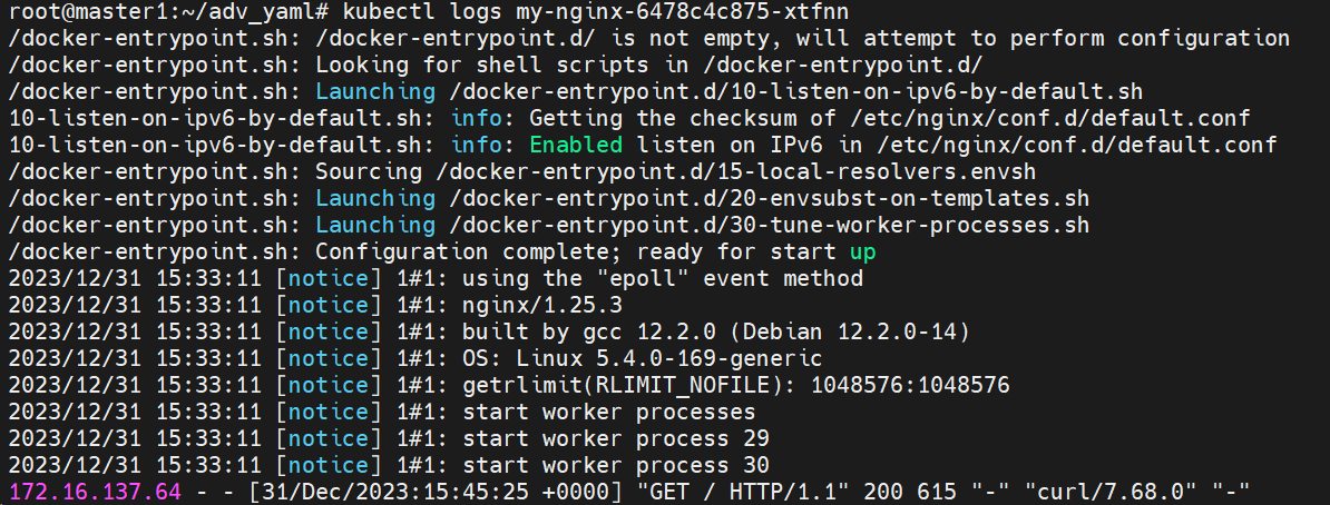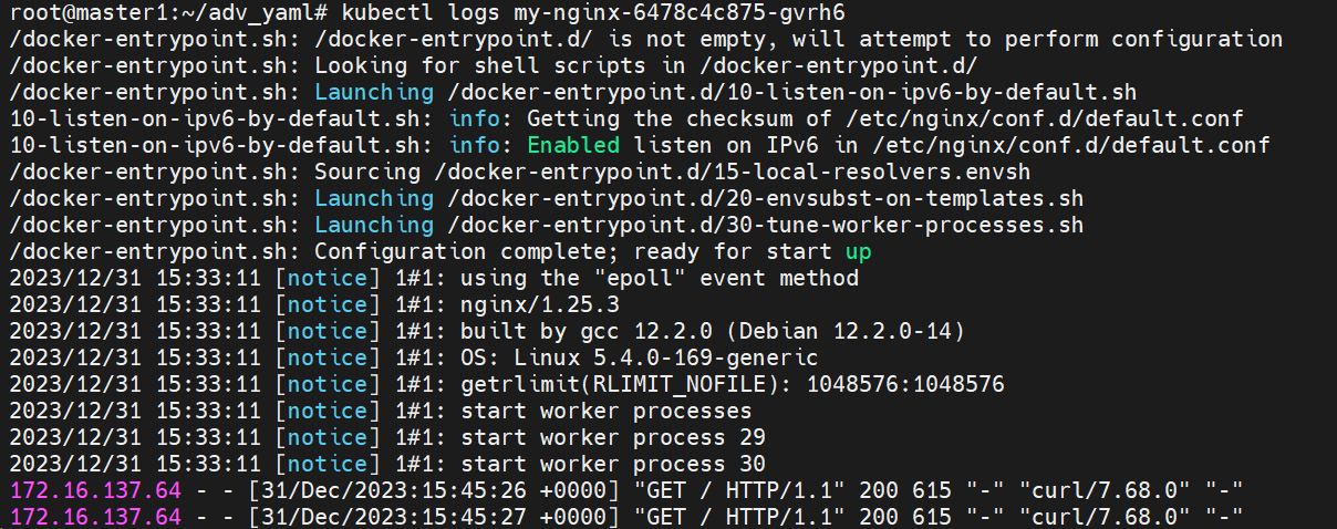 다음과 같이 개별적인 파드의 로그는 kubectl logs 명령을 통해 확인할 수 있다.