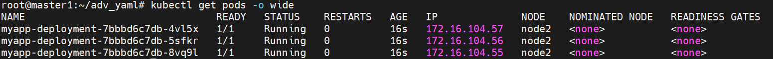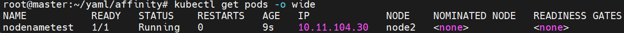 하지만 yaml코드에서 name이라는 레이블을 가지고 있지 않은 노드에 파드를 스케줄링하도록 설계했기에 모든 파드는 node2에 스케줄링된다.