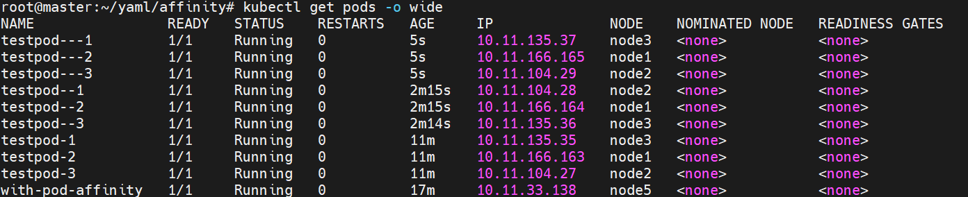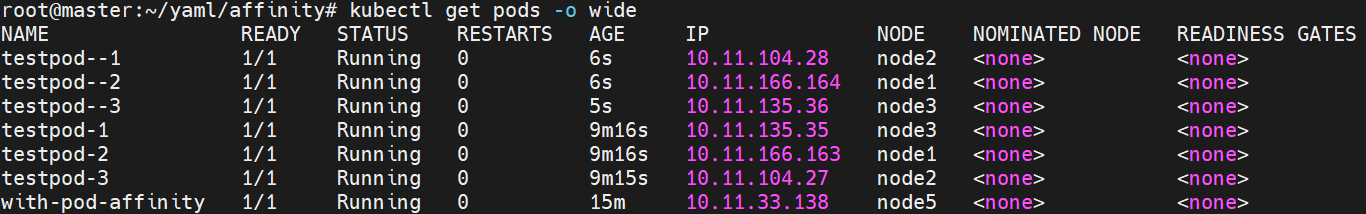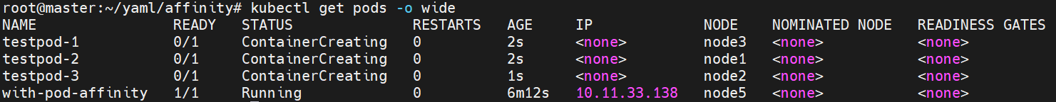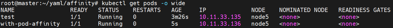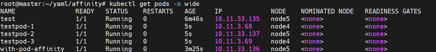 결과가 조금 이상하지만 node5와 같은 레이블을 가진 node4에는 더이상 파드가 스케줄되지는 않는다(node5도 마찬가지).