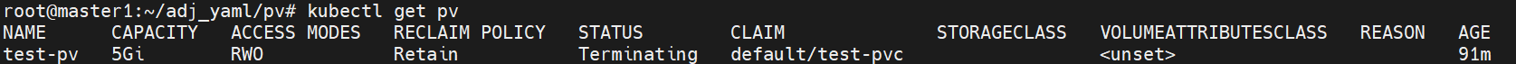 PV에 저장되는 데이터의 손실을 막기위해 PV는 다른 PVC를 통해 바인드되어있는 경우 삭제되지 않는다.