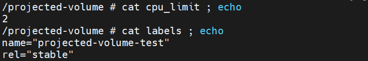 downwardAPI를 통해 레이블과 CPU한도가 값으로 저장된 파일이 생성되었다.